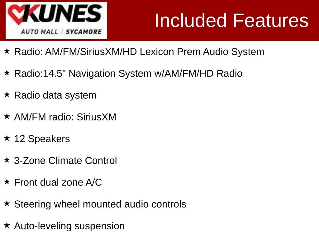 - Radio: AM/FM/SiriusXM/HD Lexicon Prem Audio System